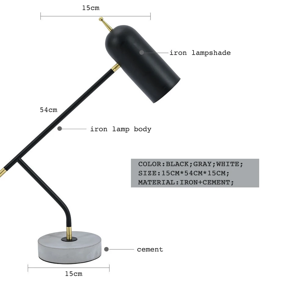 Product Name: Lampu Meja Led Modern Lampu Meja Yang Dapat Disesuaikan Semen Untuk Lampu Baca Kantor Belajar Kamar Tidur Samping Tempat Tidur E27 Pelindung Mata Baca