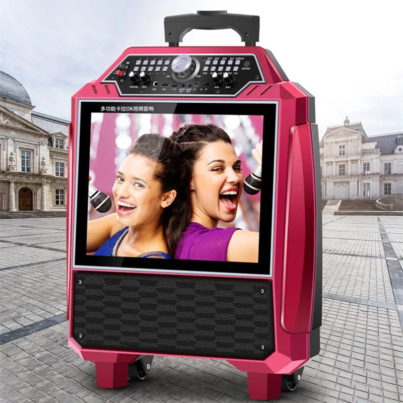 Product Name: Trolley 22 Inci HD Video Speaker Mesin Karaoke Ponsel Layar Yang Sama Bluetooth Stereo Audio MP3 Multimedia Player Subwoofer